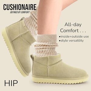 Meet Hip, an ultra cozy suede ankle boot. Made with a water resistant genuine suede upper, Hip is designed for comfort, style, and practicality, Hip also features a super soft faux shearling lining, memory foam padded insoles for extra comfort, and a durable traction outsole