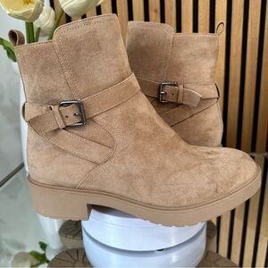 CUSHIONAIRE Women's Houston Ankle Strap Boot Tan Size 10 NEW