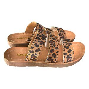 CUSHIONAIRE Women's Leopard Print 3 Band Comfort Stretch Strappy Sandals Size 8