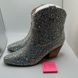 CUSHIONAIRE Women's Rhinestone Western boot +Memory Foam 7 SILVER