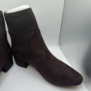 Step into these soft and stretch ankle dress booties! These boots feature a soft Vegan suede and knit upper and Memory Foam padding.