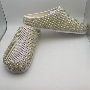 CUSHIONAIRE Women's Shimmer Rhinestone Bling Footbed Clog SIZE 9 DEFECT