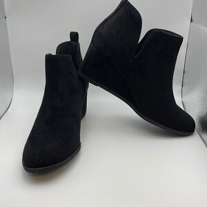 CUSHIONAIRE Women's Wedge Bootie - Soft Vegan SuedeโSIZE 8 BLACK