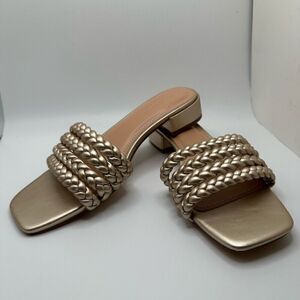 CUSHIONAIRE Women's braided low block heel sandal +Memory Foam 7.5 GOLD