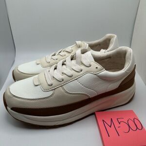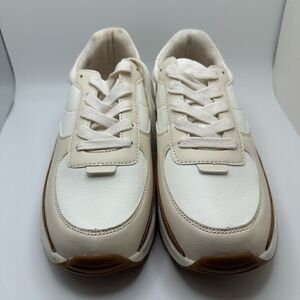 CUSHIONAIRE Women's lace up Sneaker +Comfort Foam 9 WIDE WHITE/TAN