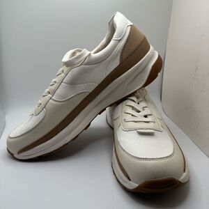 CUSHIONAIRE Women's lace up Sneaker +Comfort Foam 11 WHITE/TAN