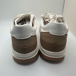 CUSHIONAIRE Women's lace up Sneaker +Comfort Foam 8.5 WHITE/TAN