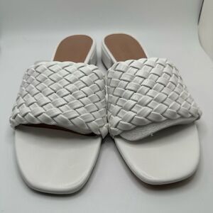 CUSHIONAIRE Women's woven low block heel sandal +Memory Foam 8.5 WHITE