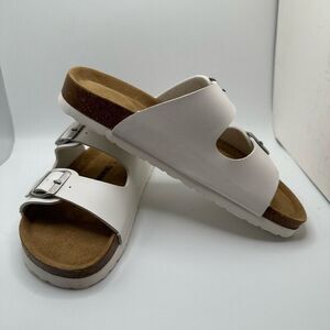 CUSHIONAIRE Women's Cork Footbed Sandal With +Comfort 7 WHITE