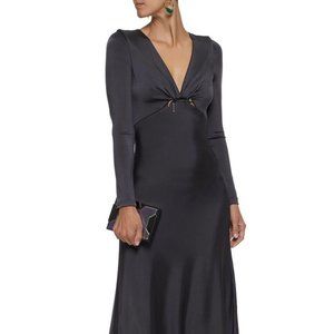 CUSHNIE ET OCHS Magdelena Embellished Satin-Jersey Midi Dress Dark Grey Size 0,