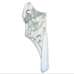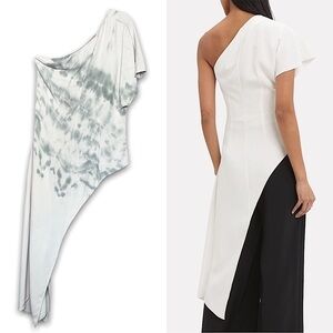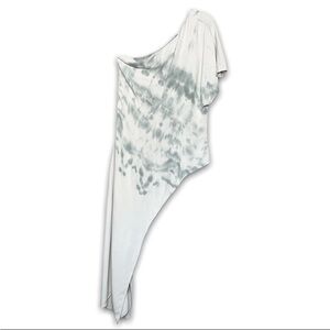 CUSHNIE One Shoulder Tie Dye Short Sleeve Draped Asymmetrical Tunic Blouse 10