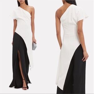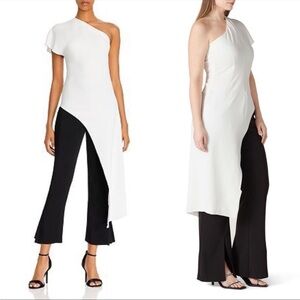 CUSHNIE White One Shoulder Draped Flutter Sleeve Asymmetrical Tunic Blouse 12