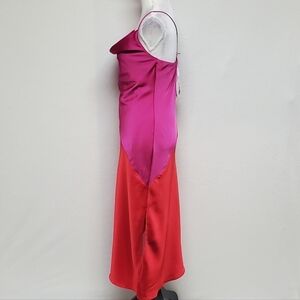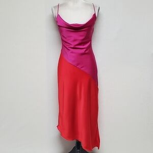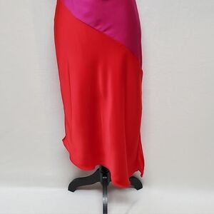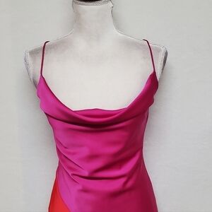 CUSHNIE x Target Pink Orange Colorblock Stretchy Satin Racerback Cowl Neck Dress
