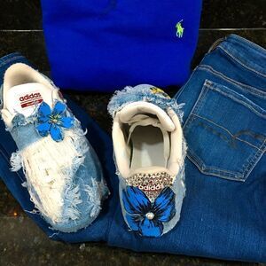 CUSTOM DISTRESSED ADIDAS! Seriously destroyed distressing, crystal bling!
