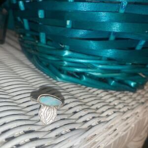 GORGEOUSLY DETAILED STERLING SILVER RING WITH A BRIGHT BLUE/GREEN AUSTRALIAN OPAL AND STERLING SILVER MEHNDI (BRINGS HEALTH AND PROSPERITY). SIZE 5.75