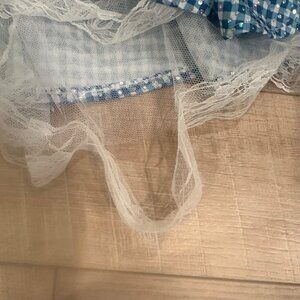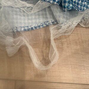 Embrace the magic of the Wizard of Oz with this custom-made Dorothy dance costume, tailored to perfection for a competitive edge. The vibrant blue hue captures the essence of the iconic character, while the intricate design pays homage to the timeless story. Ideal for dance enthusiasts and collectors, this piece is a standout representation of ballet's enchanting charm. Crafted with care by skilled artisans, this handmade costume ensures a unique and authentic experience on stage. Designed to fit a size 8, it promises a comfortable and flattering fit for young dancers eager to bring the spirit of the Wizard of Oz to life. A true masterpiece, this costume is sure to make a memorable impression at any competition. Please see measurements to be sure of size this was a handmade piece. Please also see there is a tear in the tulle.