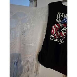 CUSTOM One of a Kind Glam Country “Raised on Country'w.Boho Lace /Fringe Sleeves