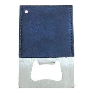 CUSTUM ENGRAVED credit card, Leather/stainless bottle opener BLUE