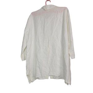 CUT LOOSE Lagenlook White Linen Blend Long Sleeve Tunic Top Button Up Large