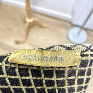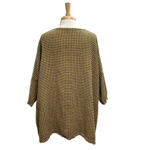 CUT LOOSE Linen Blend Boxy Check Pattern Slouchy Top Pockets Gold Black One Size