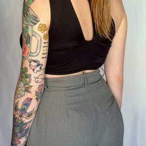 This is our favorite night-out top! Style this trendy halter top with our grey slacks and black heels.