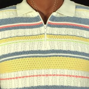 CUTE ALFRED DUNNER SHORT SLEEVE 1/3 ZIPPER MULTI-COLOR SHORT SLEEVE SWEATER M