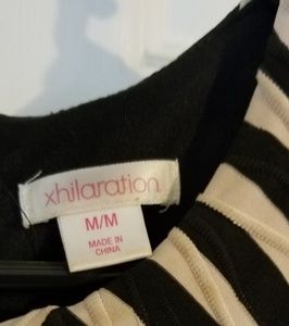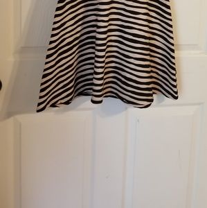 A-LINE FLARE: Sleeveless above the knee, black n tan zipper-back polyester dress. Clean washed used, ready to ship.