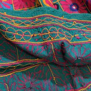 The right combo of cute and artistic. A one of a kind vibrantly hand embroidered lehenga set. Adorn your little girl in this handmade piece.
