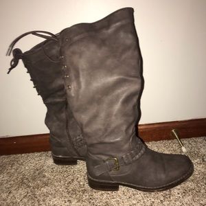 love these and only wore once, i just don’t wear them enough to keep. they end about two winches below my knee. they are in great quality also. they lace up in the back and have a small zipper in the inside to make it easy to slide on!