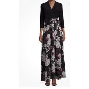 CUTE CHETTA B WOMENS CAP SLEEVE Wrapped V-NECK FIT & FLARE FLORAL MAXI DRESS-8