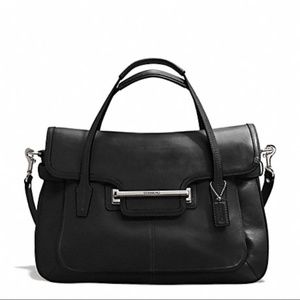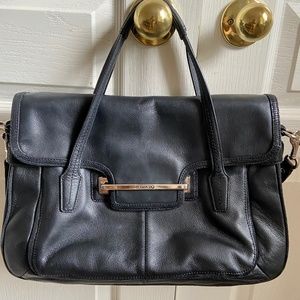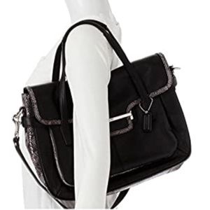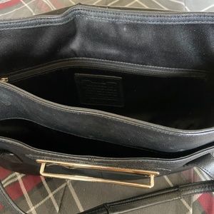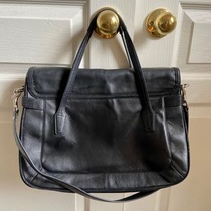 Very roomy and great for work. Long strap as well as two handles. Plenty of space inside. Classic design. Good condition. It has full lining with water resistant fabric.