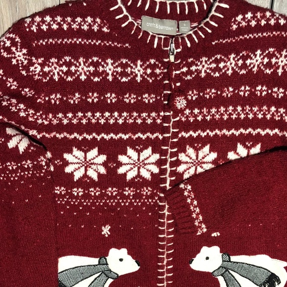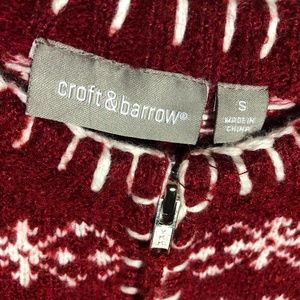 CUTE CROFT&BARROW CHRISTMAS SWEATER SIZE S. ZIPS UP WITH A CUTE PULLY. ALSO HAS TWO USEABLE POCKETS IN FRONT. TOO CUTE TO PASS UP FOR CHRISTMAS. EUC.