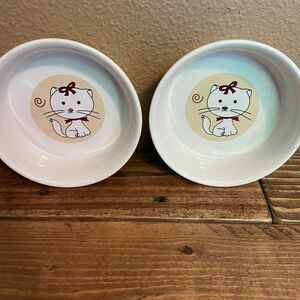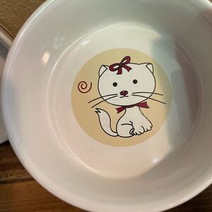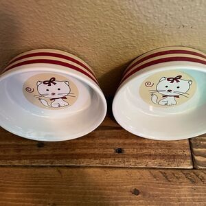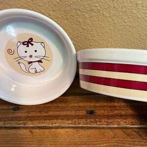 Set of 2 matching cute stoneware cat bowls. Really cute design! Striped sides. No chips or cracks. Coloring is good! Clean home!