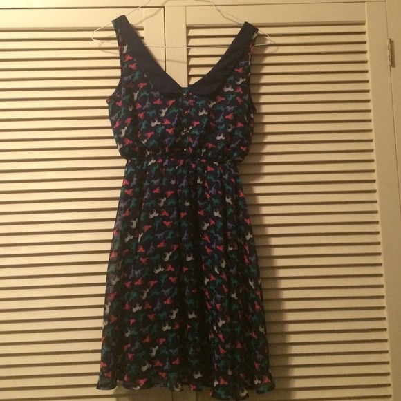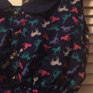 cute dress bought from target worn TWICE!! small brass buttons with an adorable low collar and horses printed all over!!