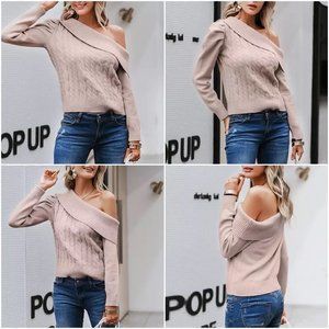 CUTE FEMININE Cold Shoulder Sweater Blush Pink