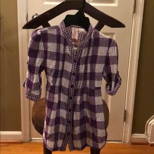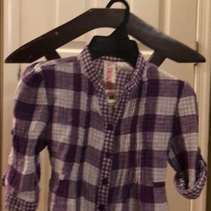GIRLS SHIRTDRESS ~ super soft 100% cotton shirtdress ~ large checkered outside with adorable complimentary, small checkered lining. Roll-up sleeves with button & tie-back at waist. Bottom sides can be scrunched up & buttoned.