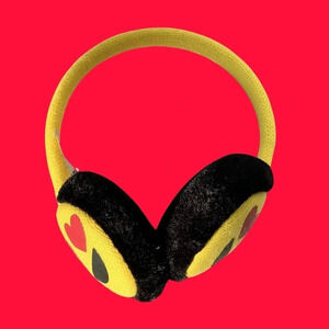 TAGS: winter, snow, snow gear, earmuffs, ear muffs, jacket, hat, Justice, cat, kitty, emoji, heart, yellow,