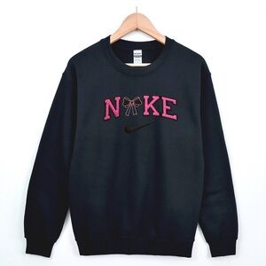 CUTE PINK BOW EMBROIDERY CREWNECK SWEATER