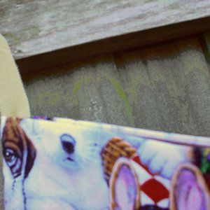 Sweet puppies on a handmade Christmas stocking hand made of 100% cotton, lined with a hanging loop.