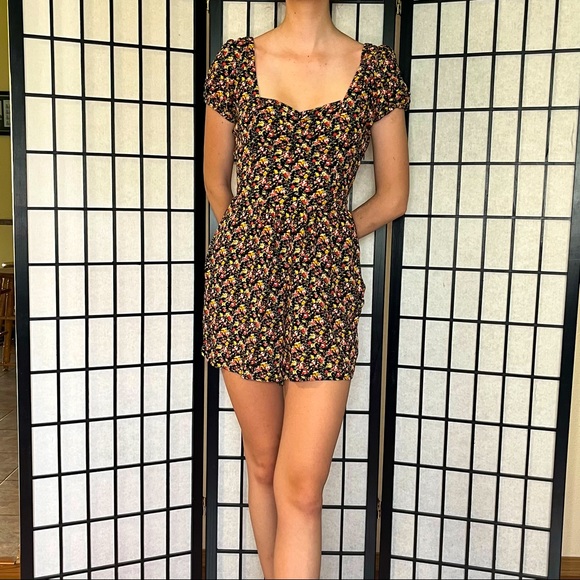 American eagle romper , the flower print is super cute, and I love the shoulder puffs and super comfortable to wear in the summer heat ! 😎