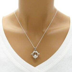 Cute and adorable sterling silver waddling penguin pearl cage pendant with CZ eyes for extra sparkle!