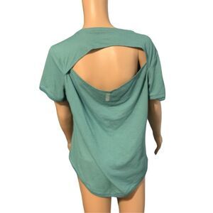 CUTE WOMEN UNDER ARMOUR* greenish PRINT SIZE XL LADIES EXERCISE SHIRT cut out back design
