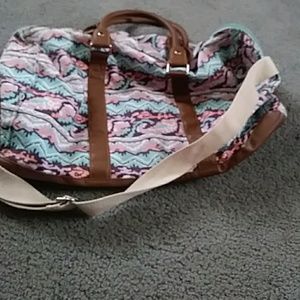 Colorful pattern with handles or shoulder strap to carry...perfect for school..overnight trip or carry on for travel! Used but good overall condition