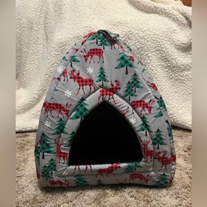 CUTE portable cat, dog sleeping winter themed bed tent. NWOT 16” tall