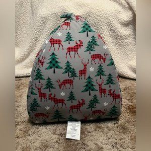 This little cat, dog tent bed is so cute!! It is 16” tall, 14.5” x 14.5” base, has a super soft and fluffy fleece removable pillow inside. Can be used in the winter and in the summer. Moose, pine trees, and snowflake print on a grey background. Tent folds down and has a carrying loop. For smaller pet. (Probably under 10#-unless your pet likes small places!!)