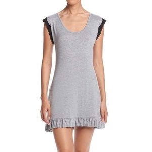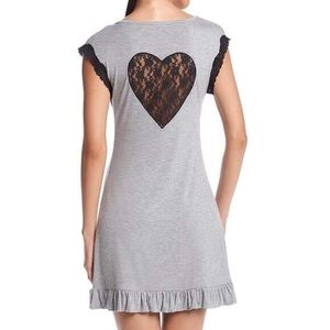 GRAY NIGHT SHIRT WITH BLACK LACE ON CAP SLEEVE AND HEART ON THE BACK VERY SOFT And never worn