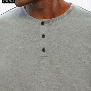 The AO Long Sleeve Curve-Hem Tee brings a modern edge to our classic henley silhouette. Cut from our proprietary PYCA Pro® fabric and detailed with a curved hemline, this tee is designed for comfort and versatility. Designed to keep up with an active lifestyle, this henley is great for the work week, travel, and any occasion from casual to formal wear. Featuring a more trim, Signature-fit, it’s tailored to move with your body and will become one of your favorite tees in no time.