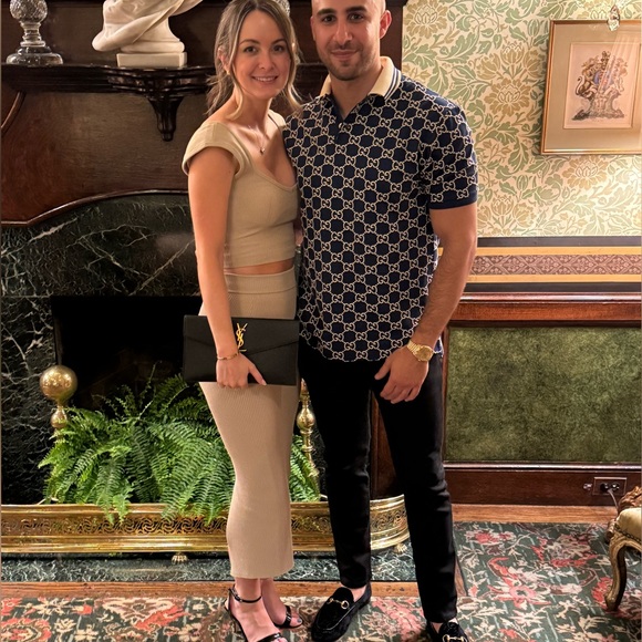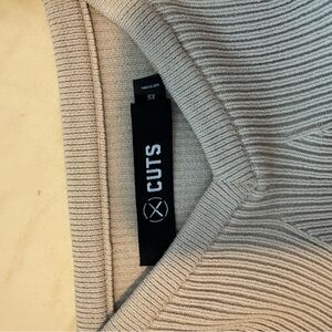 Stylish tan ribbed knit two-piece set. Includes a sleeveless top and matching skirt. Perfect for casual outings.