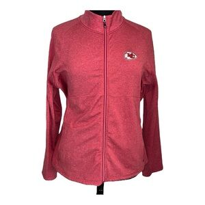 This lightweight jacket is made from recycled polyester and spandex, and features embroidered Kansas City Chiefs graphics.Has a very light weight fleece lining. Good for mild weather, soft against skin.