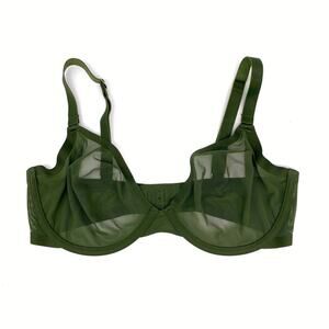 CUUP The Plunge Bra in Moss Green. Mesh body, seam sealed edges, see through. Adjustable straps and waist. Great condition!